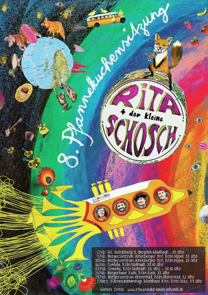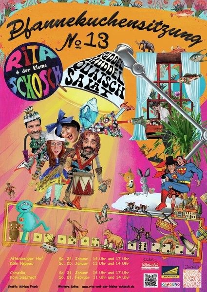 Kuddelmuddel und seine Freunde Larifari, Schmutziputzi und Halligalli stellen mit ihrer Phantasie alles auf den Kopf. In kürzester Zeit zaubern sie überall Superlaune herbei. Sie werden von den Kinderzimmerbewohnern sehnsüchtig erwartet. Die Spielfiguren hüpfen und tanzen über das Spielbrett. Aus dem Mülleimer springen upgecycelte Müllprinzessinnen und drehen ihre Pirouetten. Steinzeitmenschen entsteigen einer Zeitmaschine. Das verlangt nach einem Einsatz von Superfrau und Supermann. Monster werden lebendig und der Bobbycar verwandelt sich in ein schickes Polizeiauto. Nachher ist nichts mehr so wie es vorher war. Zum Schluss und vielleicht auch zuguterletzt heißt es dann doch wieder „Du musst, du musst aufräumen!“ Die Band „RITA und der kleine SCHOSCH beglücken seit Jahren große und kleine Fans mit ihren Pfannekuchensitzung und ihrer groovigen Musik. Ein Garant für einen großen Familienspaß.